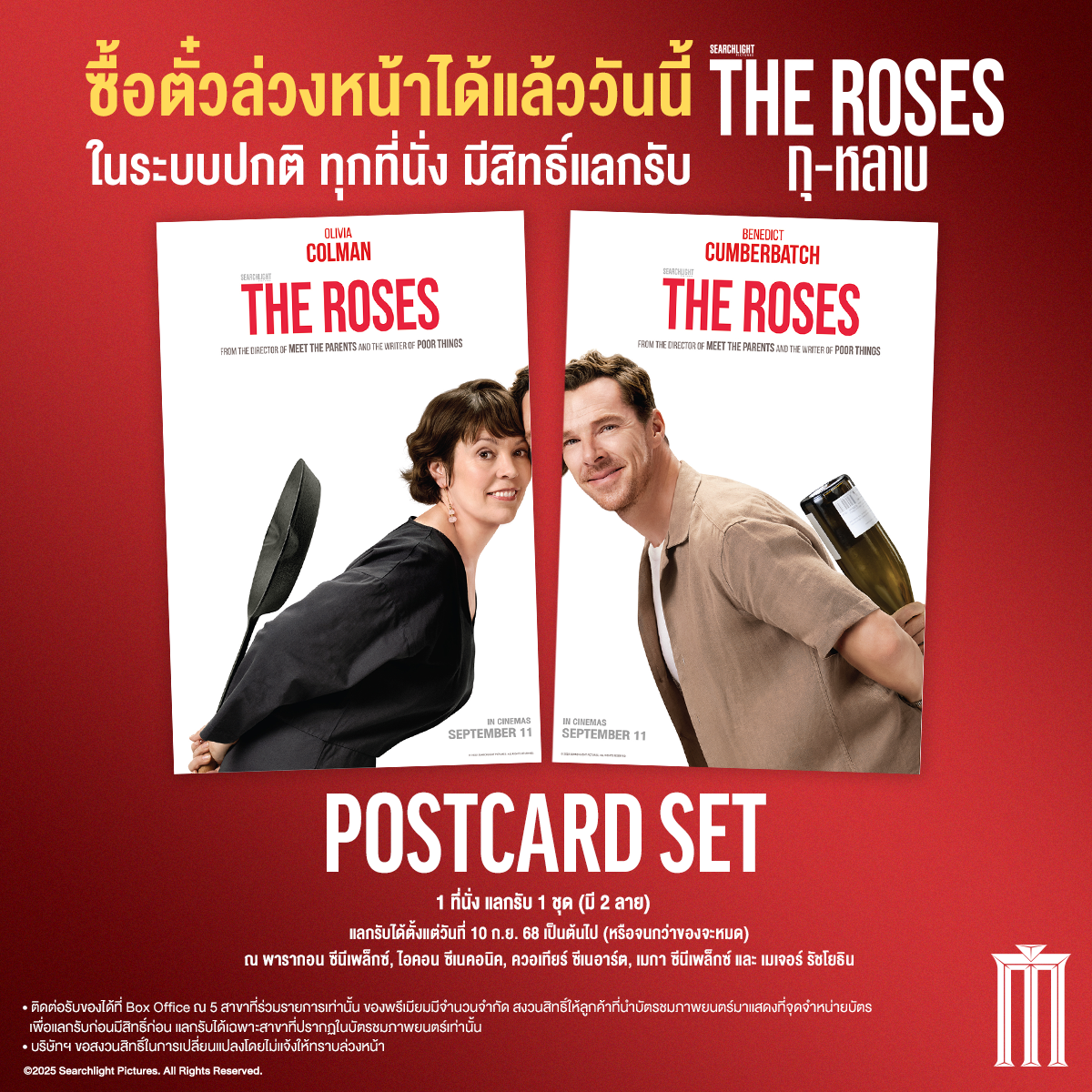 • สำหรับบัตรชมภาพยนตร์ The Roses (กุ-หลาบ) ทุก 1 ที่นั่ง แลกรับโปสการ์ด 1 ใบ