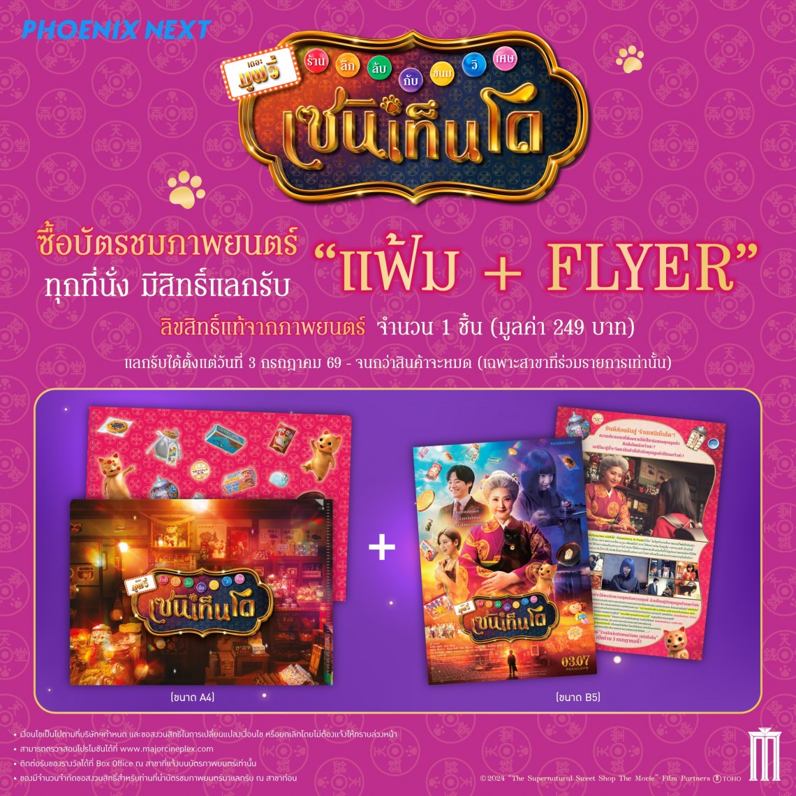 ซื้อบัตรชมภาพยนตร์เรื่อง ร้านขนมลึกลับกับขนมวิเศษ เซนิเท็นโด ทุกที่นั่ง รับฟรี แฟ้ม+FLYER 1 ใบ มูลค่า 249 บาท