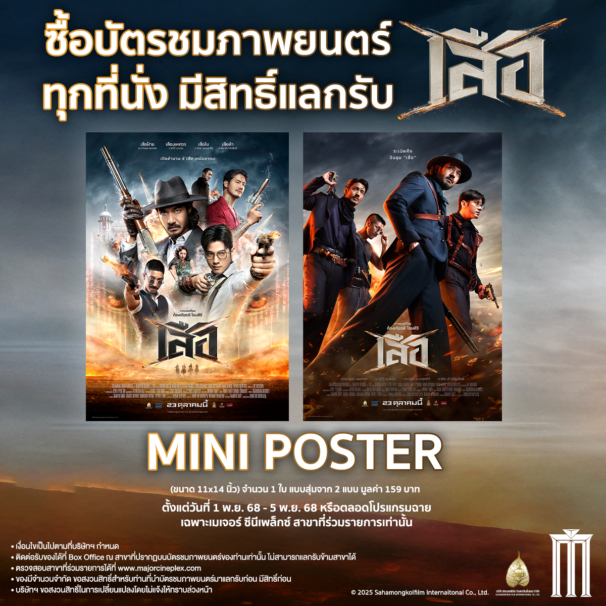 1. สำหรับบัตรชมภาพยนตร์ เสือ ทุก 1 ที่นั่ง แลกรับ Mini Poster 1 แผ่น (สุ่มจาก 2 ลาย)