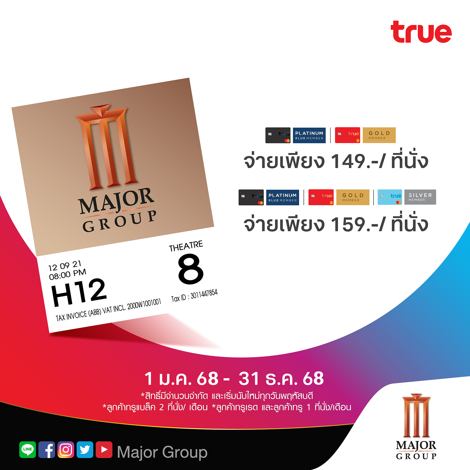 • โปรโมชั่นนี้สามารถรับสิทธิ์ได้ที่โรงภาพยนตร์สาขาเมเจอร์ ซีนีเพล็กซ์, อีจีวี ทุกสาขา ทั่วประเทศ