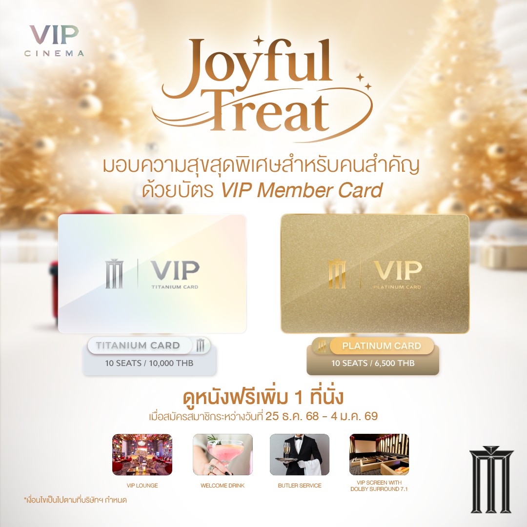 • โปรโมชันสำหรับลูกค้าที่ซื้อบัตร VIP Member Card ระหว่างวันที่ 25 ธ.ค. 68 – 4 ม.ค. 69 เท่านั้น