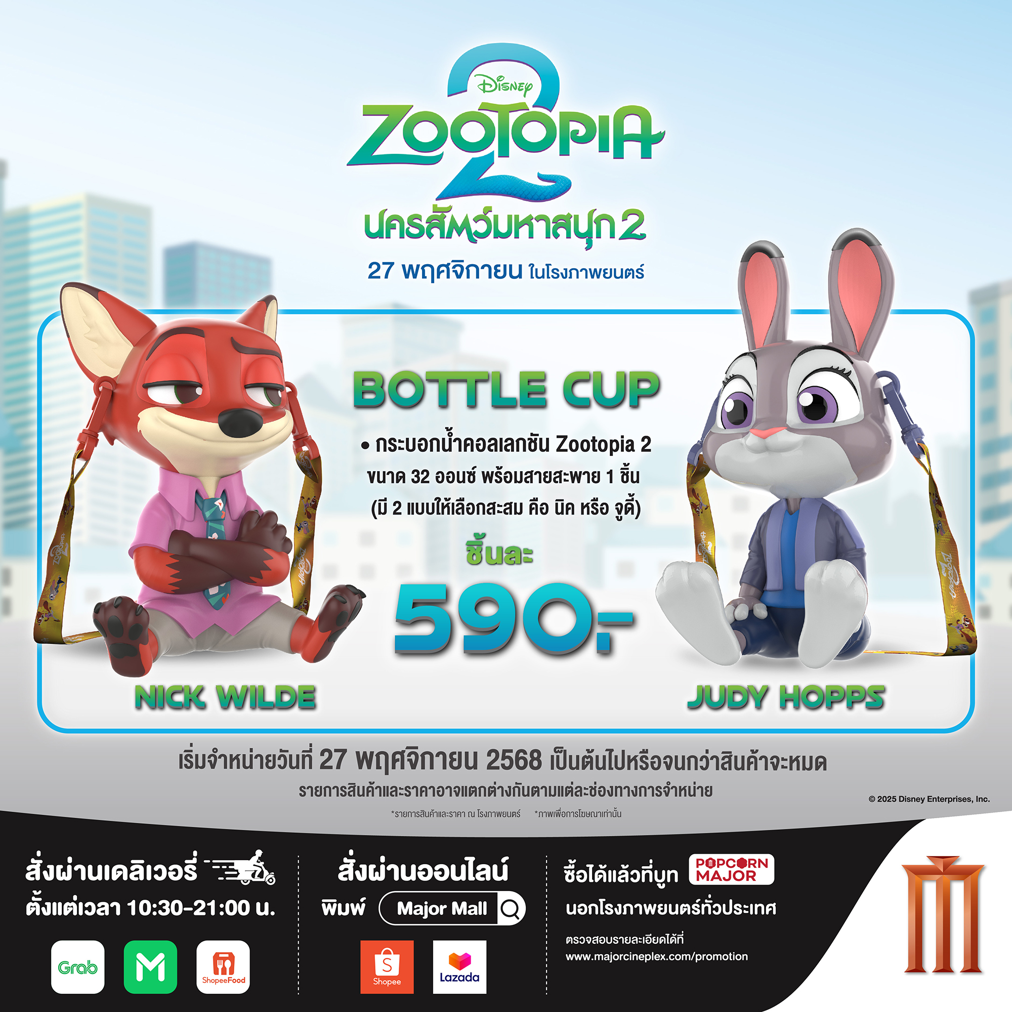 +กระบอกน้ำนิค ขนาด 32 ออนซ์ พร้อมสายสะพาย (เฉพาะ Packaging ไม่รวมน้ำอัดลม และ มี 2 แบบให้เลือกสะสม คือ นิค ไวลด์ หรือ จูดี้ ฮอปส์)